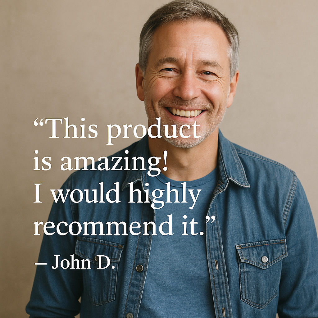 "This product is amazing! I would highly recommend it" – John, 58