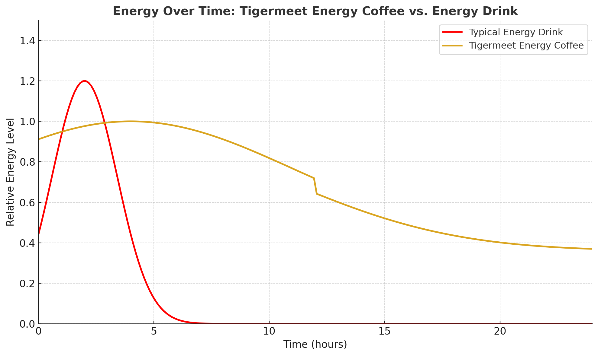 Tigermeet Energy Coffee delivers smooth, sustained energy without the harsh crash compared to typical energy drinks.